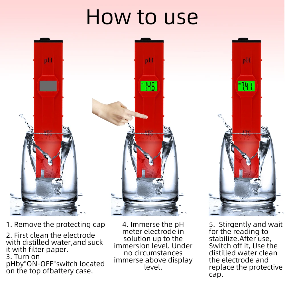 Этот цифровой измеритель pH в стиле ручки является идеальным инструментом для аквариума, рыболовной промышленности, бассейна, школьной лаборатории, продуктов питания и напитков и т. д.