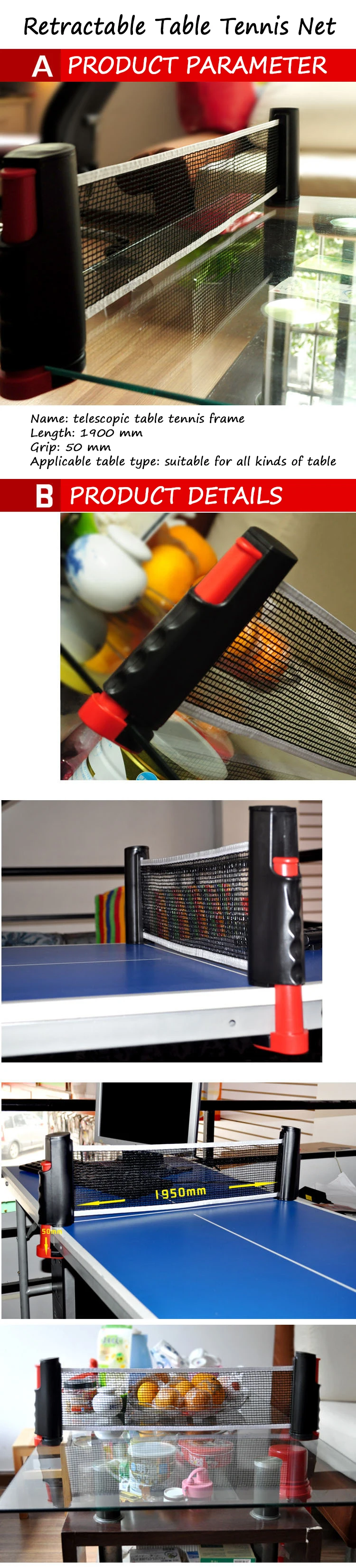 【Specification】 Тип товара: сетка для настольного тенниса Материал: нейлон и пластик Цвет: черный + красный Размер: (прибл.) Максимальная толщина зажима: 5 см Высота сетки: 14 см Длина нетто: 170 см Вес: 0,36 кг 【Особенности продукта 】 1. Простая эксплуатация, простота установки и эксплуатации, подходит для групповых развлечений и соревнований. 2. Полагайтесь на эластичное устройство, откройте, нажмите, шина и другие ссылки, чтобы сделать удобную и прочную регулировку блокировки сетки для настольного тенниса. 3. Легко носить и использовать 【Инструкция по эксплуатации 】 Возьмите сетчатые столбы и вытяните их, чтобы расширить сеть между ними. Закрепите один столб по краю стола с помощью простого нескользящего зажима, встроенного в нижнюю часть, затем потяните другой столб по длине стола и закрепите его на месте, чтобы настроить сеть. 【Размер】 Из-за световых эффектов, настроек яркости/контрастности мониторов и прочих факторов могут наблюдаться некоторые различия в цвете между фотографией на сайте и самим товаром. Изделие измеряется вручную, может отличаться на 1-2 см. Надеюсь, вы понимаете. Мы искренне ценим это.