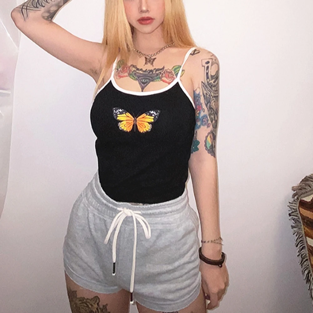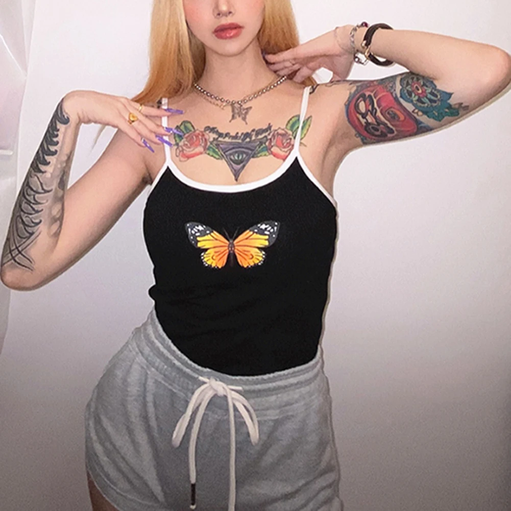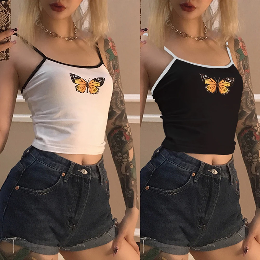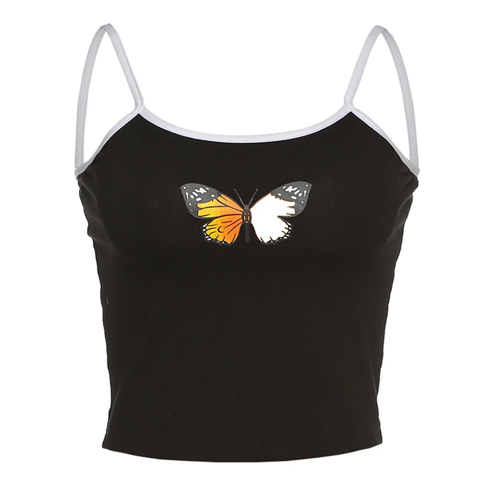 Сексуальные женские топы без рукавов с принтом бабочки, летние топы с бретельками, Короткие топы, уличная одежда, повседневные топы
