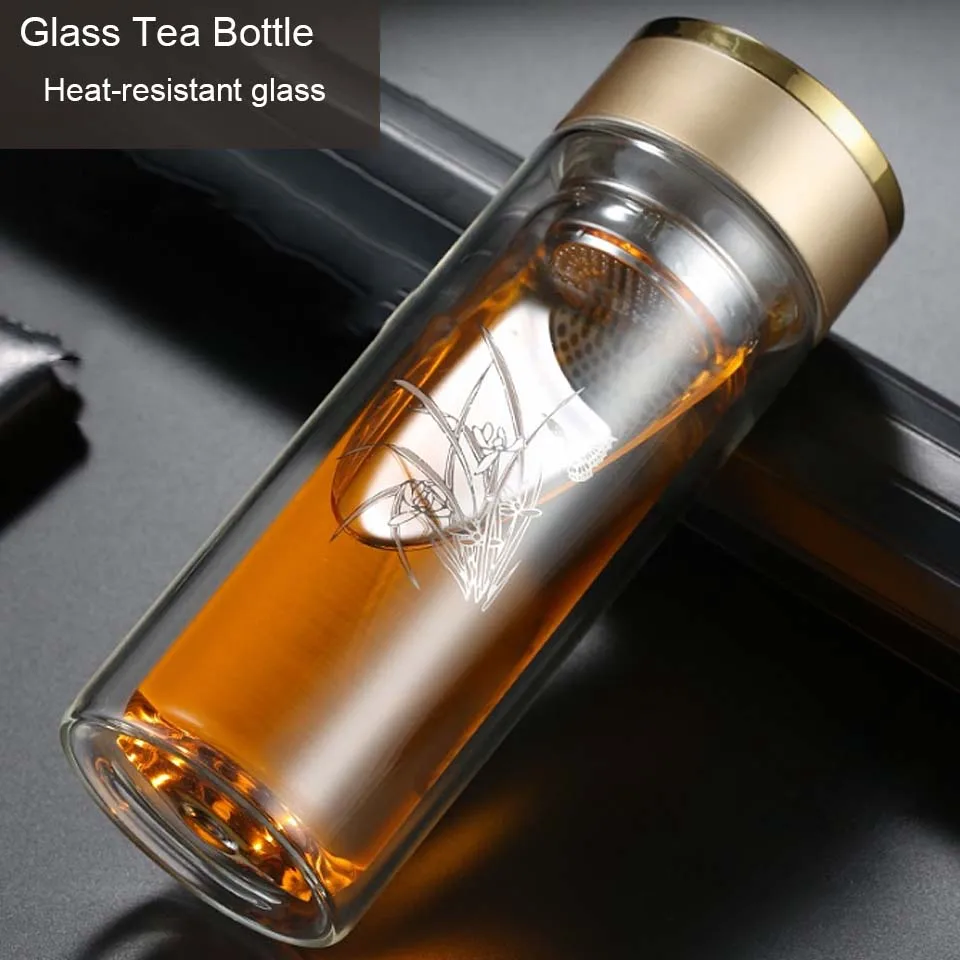 BORREY 450Ml Water Bottle Glass Double Wall Borosilicate Glass Tea Bottle With Infuser Filter Handle Double Layer Office Cup Tea Mug