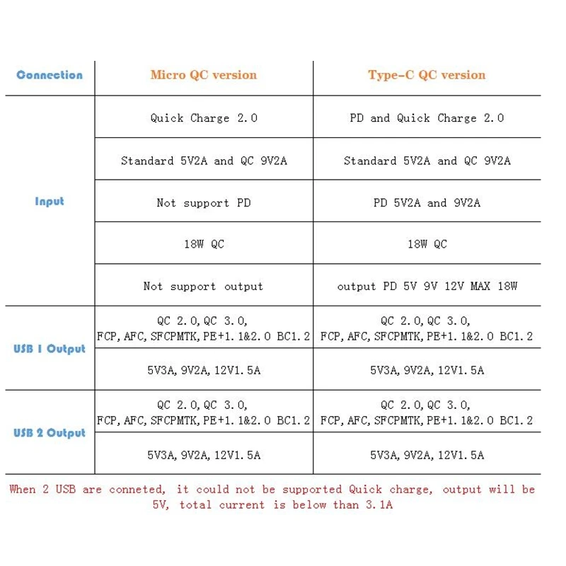 Если два выхода USB одновременно, не может поддерживать быструю зарядку, и ток не может превышать 3,1 А