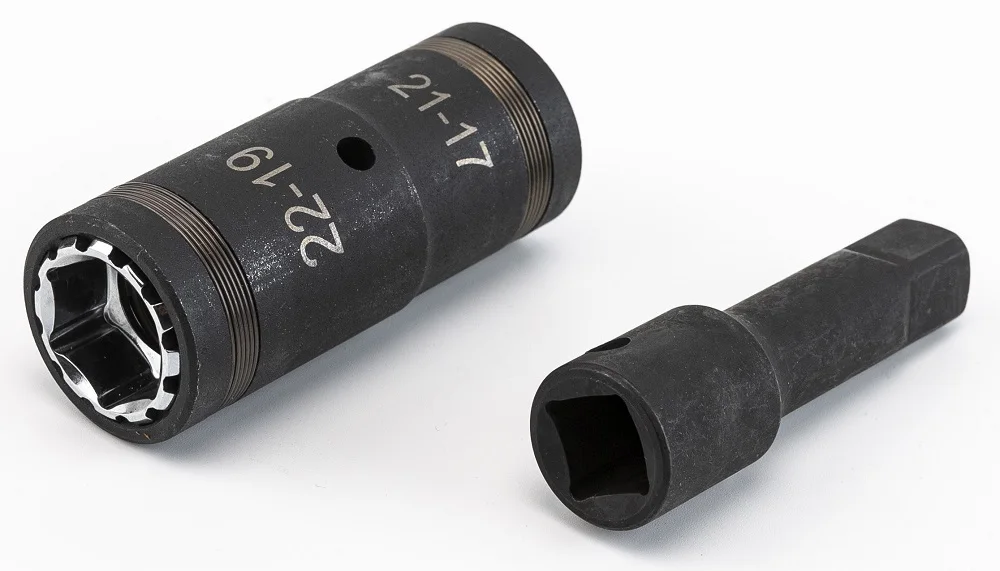 Одна розетка может использоваться в 4 размерах для замены 4 розеток. Используйте с 1/2 дюймовым приводом удлинитель удара, ударный ключ, инструмент удара воздуха и другие инструменты. 6-точечный radiused углы уменьшают износ от ярким на плоской поверхности крепежа для увеличения крутящего момента и уменьшают износ. Уникальная конструкция duo flip socket позволяет быстро и удобно снимать 8 различных размеров гаек для шин Тонкостенная розетка с уменьшенной толщиной обеспечивает легкий доступ к утопленным гаечным газам, где пространство ограничено Изготовлен из высокопрочной хромовой молибденовой стали с отделкой черным фосфатом для высокой устойчивости к коррозии для максимального срока службы гнезда Набор розеток поставляется с полной маркировкой для легкой идентификации в прочном Набор содержит 4 откидных гнезда: 17 мм x 19 мм, 21 мм x 22 мм Тонкие стеновые ударные гнезда предназначены для легкого доступа к утопленным колесным газам в ограниченном пространстве. Откидная розетка дает больше размеров с меньшим количеством гнезд.