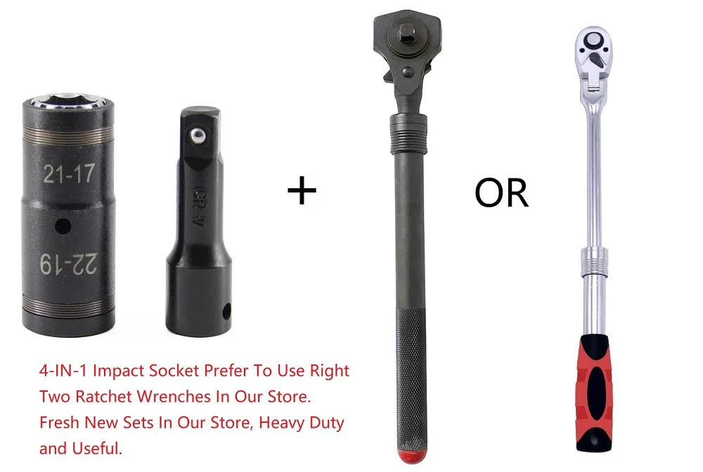 2-в-1 с двумя головками Выдвижная ключ с храповым механизмом и 4-в-1 шин воздействия резьбой раструбного соединения для 3 дюймов гибкий удлинитель