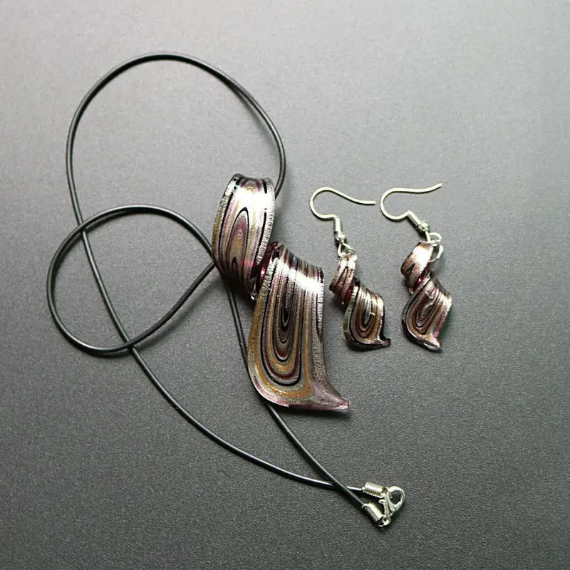Женский кулон ручной работы в китайском стиле в стиле ретро, витая Подвеска из стекла цвета фуксии, комплект из серег и ожерелья
