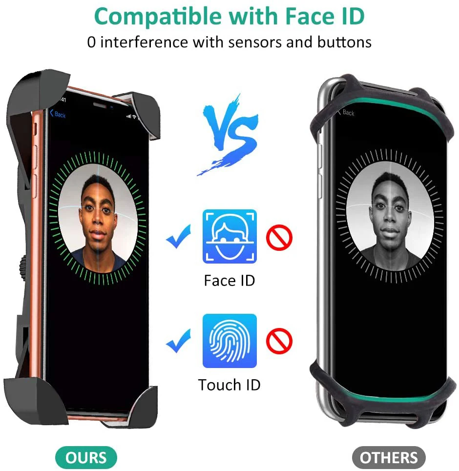 Держатель для телефона для велосипеда поставляется с 4 износостойкими силиконовыми когтями и нескользящей PU накладкой, которая эффективно защищает ваш телефон от царапин. Кроме того, этот дизайн может надежно поймать ваш телефон.