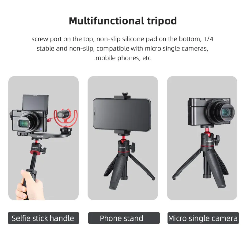 Используется для мобильный телефон, зажим, ручка для спортивной камеры, мини штатив, удлинитель, кронштейн, установочная ручка, штатив Особенности: 1. Съемный PTZ, регулируемый угол высоты, 2. Универсальные винты 1/4 могут быть подключены к кронштейнам на мобильный телефон, спортивным камерам и другим аксессуарам расширения, 3. Маленький и светильник, легко носить с собой. Описание: Материал: АБС-пластик Вес нетто: 170 г, Подходит для: OSMO Mobile 2 3 OM4 Zhiyun Smooth 4 Q2 Moza Mini-S Mini-P Mini-MI Feiyu VLOG pocket Vimble2 SPG2 захват FUNSNAP isteady Pro MGS SNOPPA ATOM Hanhdehld gimble Gimbal стабилизатор. Упаковочный лист: 1 шт. штатив. Примечание: в комплект не входят Экшн-камера и штатив.