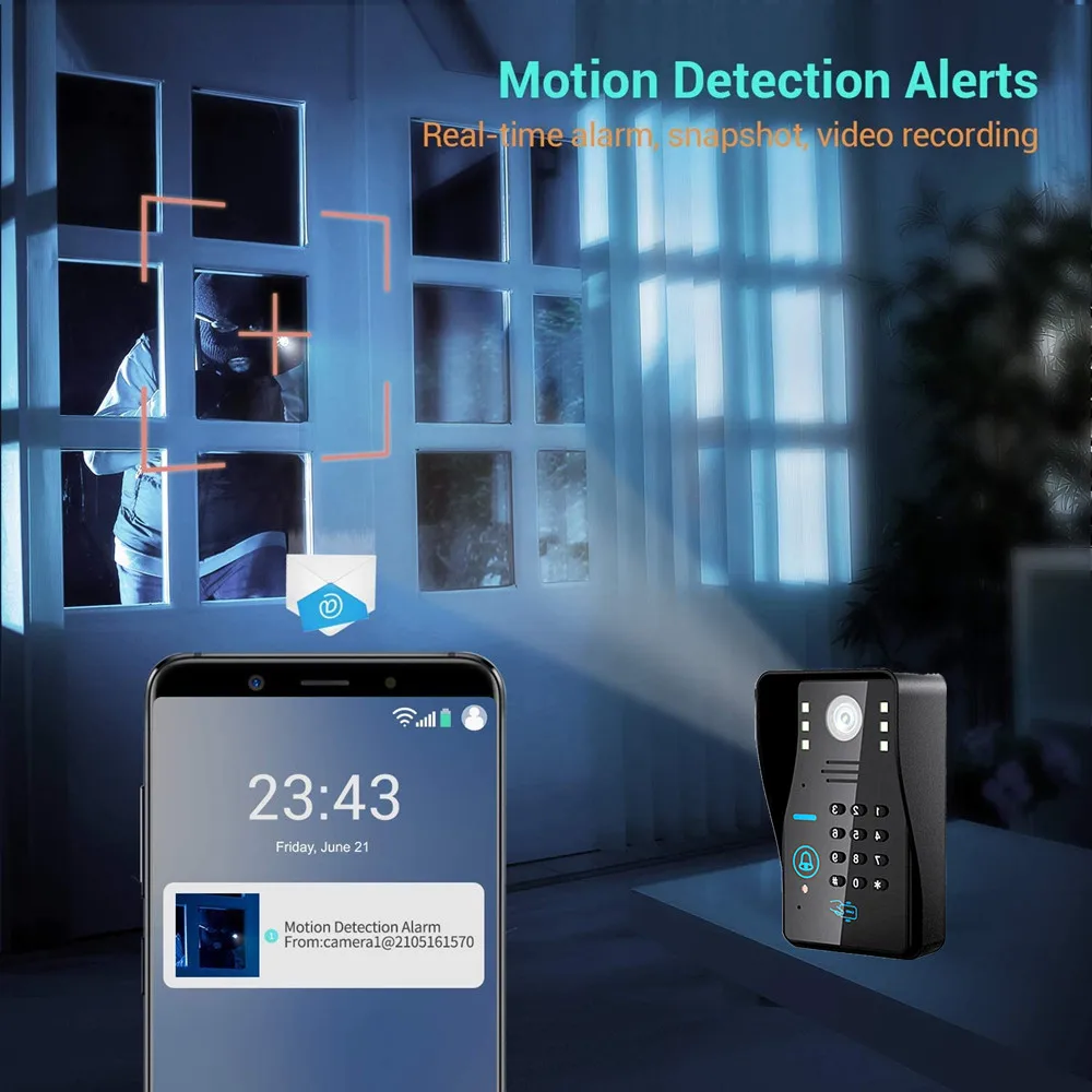 Наклон: IP wifi видео дверной звонок камера Интерком система 1080p HD беспроводной ИК sd RFID Электрический замок домашняя Безопасность Видео дверной телефон Обзор: " Беспроводной смарт-видео дверной звонок Домофон камера: Этот WiFi видео дверной звонок камера также один wifi 1080P HD IP камера, вы можете дистанционно проверить дверную камеру iphone ipad android телефон видео наблюдения в любое время в любом месте, установка и подключение wifi ip-камеры безопасности Легко и ip-wifi видео домофон камера также поддерживает RFID электрический замок и кнопку выхода, вы можете открыть дверь на мобильный телефон и проверить посетителей с помощью функции обнаружения движения сигнализации. wifi ip видео дверь зритель хороший выбор для дома Квартира 1080P Full HD и ночное видение: Домашняя безопасность wifi видео дверной звонок камера может использоваться как днем, так и ночью, он контролирует Ваш дом в 1080 HD видео с ИК-инфракрасным ночным видением и живым видением. Он поддерживает широкий угол обзора 92 градусов и предлагает двусторонний аудио-разговор, чтобы вы могли легко держать разговор. Wifi ip видео дверная камера с сигнализацией обнаружения движения и водонепроницаемостью: наш wifi беспроводной видео вход телефон безопасности камера помогает вам поддерживать безопасность, просматривая кто находится у вашей двери, не открывая его. Чтобы обеспечить защиту, мы используем водонепроницаемую конструкцию IP55 Безопасное Облачное хранилище и локальное хранилище Wi-Fi домашняя система безопасности видеодомофона: видеодомофон для видеозвонка принимает кредитное шифрование, поддерживает до 64 микро SD(32 Гб SD карта входит в комплект) хранение и Облачное хранилище. Вы также можете хранить видео на свой мобильный телефон, вы никогда не пропустите ни минуты с удаленным видеонаблюдением и воспроизведением видео " Введение функции: Дверной звонок с помощью сенсорной кнопки, мощность, щедрый, красивый; Колокольчик и защита от дождя, водонепроницаемый дождь, срок службы защиты машины; Функция разблокировки дверного звонка (интерфейс блокировки подходит для постоянного тока 12 В часто открывается/Chang Bisuo) также может использоваться в сочетании с питанием контроля доступа; Дверной звонок имеет дверной кнопочный интерфейс; Уличный аппарат может поддерживать до 5 пользователей мобильный телефон Приложение для телефона до максимального количества дверного звонка Дверной звонок с функцией внутренней связи на мобильный телефон, звук четкий и громкий. Функция обнаружения человека в дверном звонке Функция мобильного обнаружения дверного звонка 0 дверной звонок инфракрасная функция ночного видения Мобильный телефон может контролировать дверной Звонок Функция камеры дверного звонка Функция видео дверного звонка, телефон можно просматривать в любое время. Дверной звонок добавил множество способов разблокировки функции (разблокировка кредитной карты, блокировка паролем, разблокировка пульта дистанционного управления) P2P сервер push-звонки посетителей, посетителей фотографировать и обнаруживать записи тревоги. Внешняя система контроля доступа машины выбор лучшего процессора, может сохранить 500 пользовательских карт и 10 наборов универсального пароля, не из-за потери энергии и потери. Мощный, с программой восстановления паролей, не теряя исходные данные, Индукционная дверь ID карты, индукци