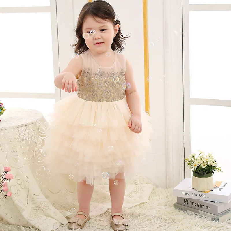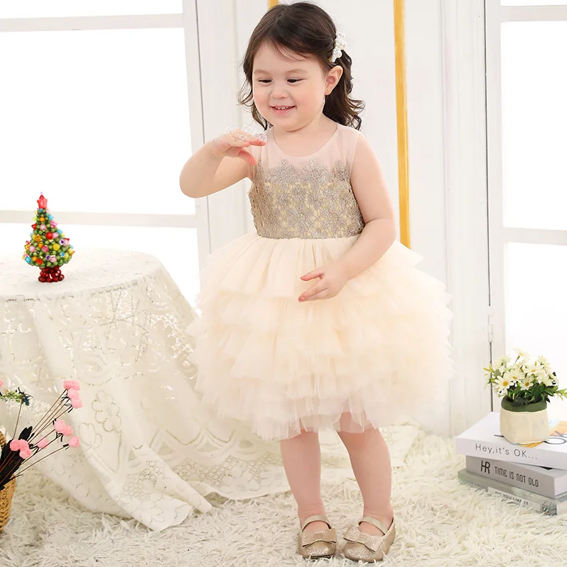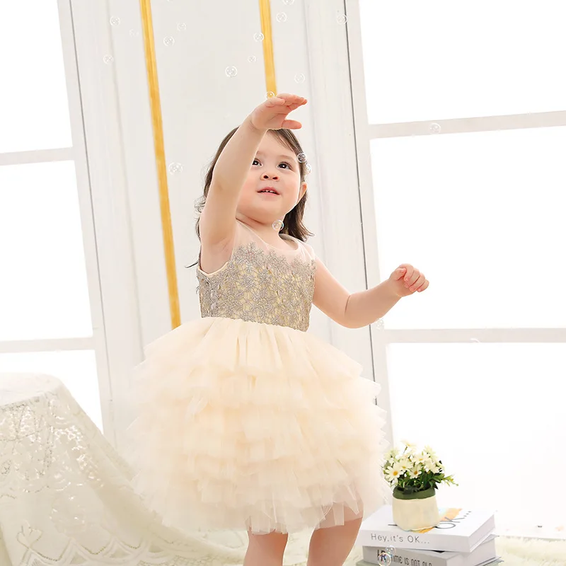Бежевое платье для первого дня рождения для маленькой девочки многослойная юбка-пачка для малышей Детское платье одежда для крещения для маленьких девочек