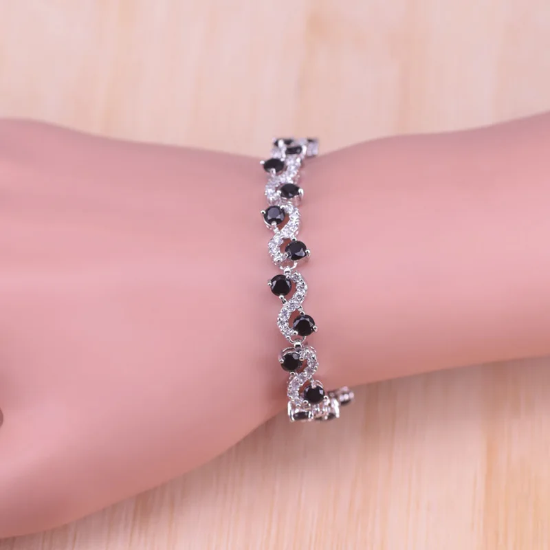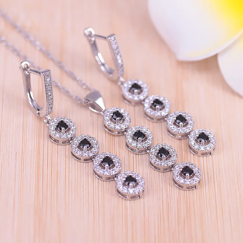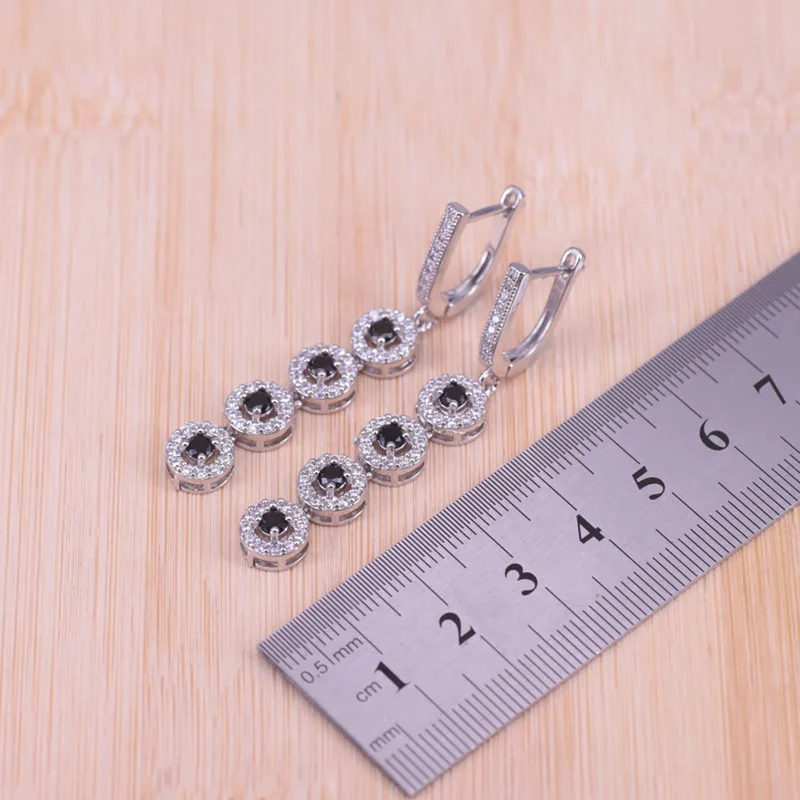 Risenj трогательный подарок Blak кубический циркон серебряный цвет Висячие длинные серьги браслет ожерелье набор для женщин вечерние НКА/помолвка