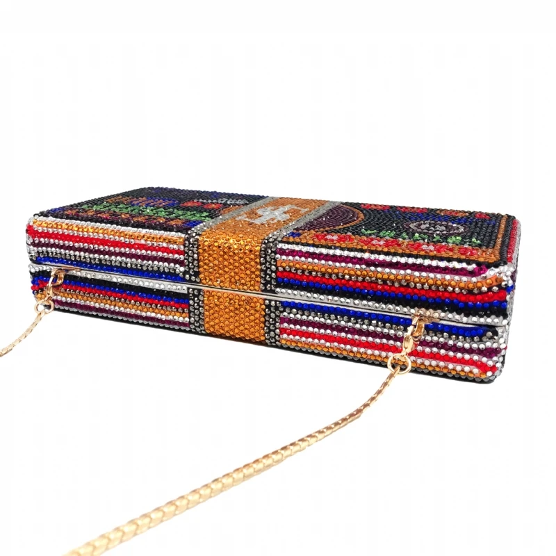 -Внешний материал: полностью из алмазов -Внутренний материал: полиуретан -Размер (см): 18.5x4x9 -Вес нетто (кг): 0,45 -Металлические цепочки: отстегивающиеся короткие медные цепочки под змею длиной около 48 см -Посылка: подарочная упаковка, дополнительные кристаллы -Подходит для Iphone Plus -Подходит для любых особых мероприятий, свадеб, вечерние, вечерние, выпускные и коктейльные. -Цвет на заказ: Да -Оптовые цены: Да