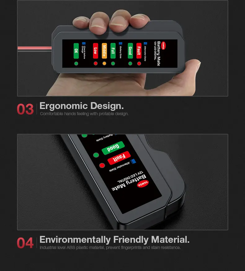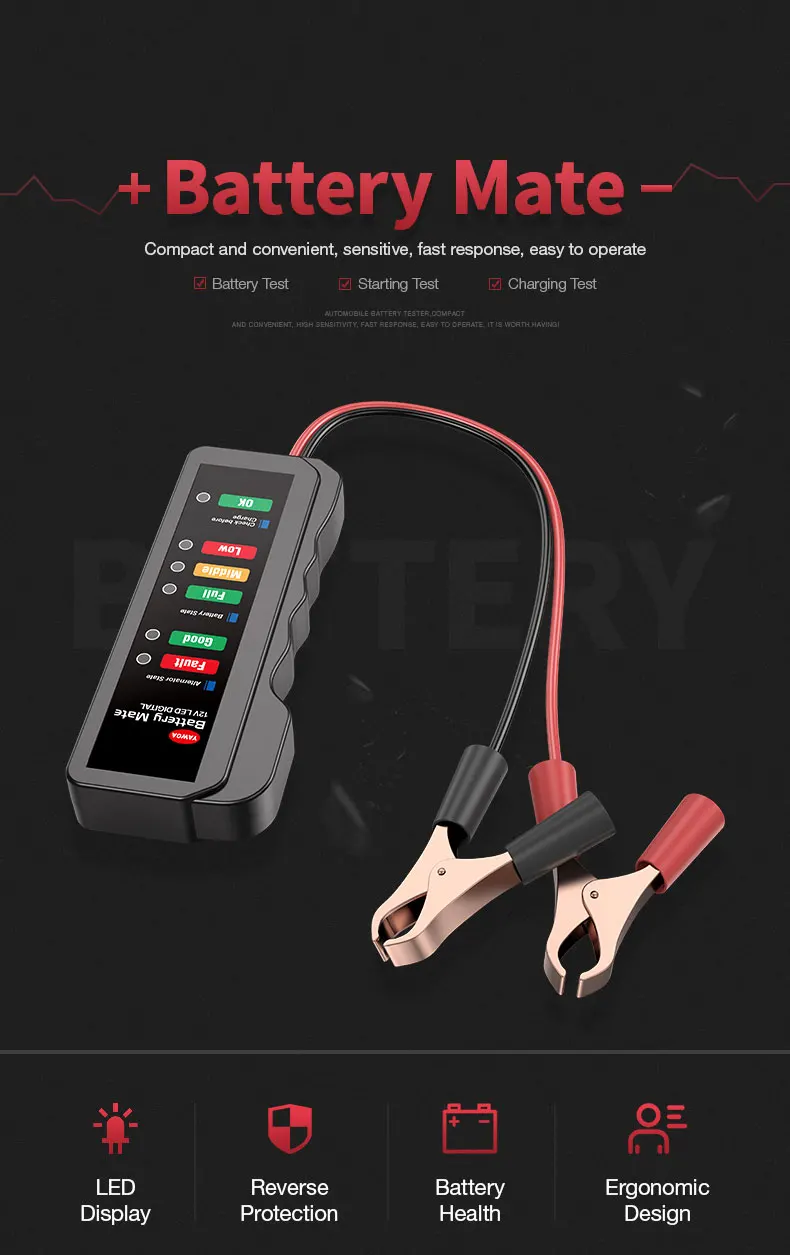 12 ВСВЕТОДИОДНЫЙ цифровой аккумулятор mate-это простой, но эффективный инструмент для тестирования батареи, который может определить состояние батареи, его легко использовать и понять.
