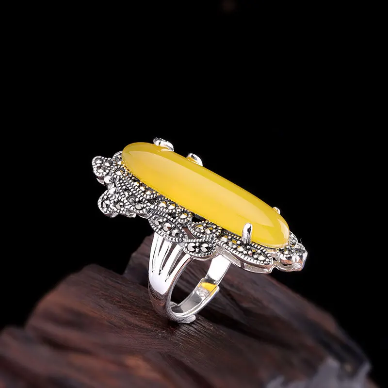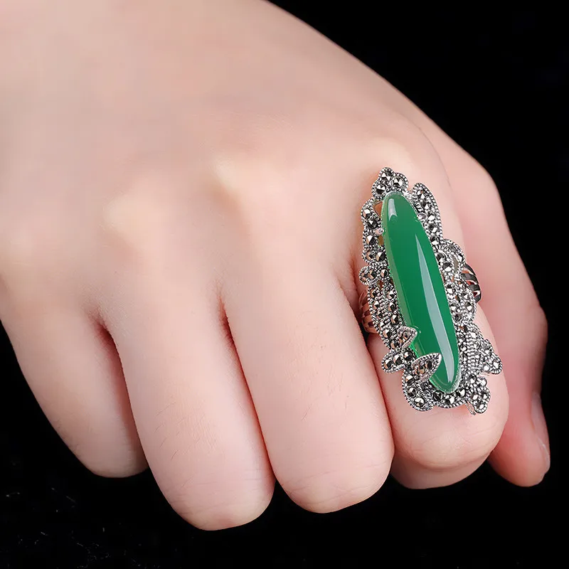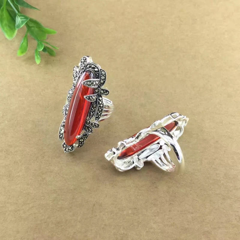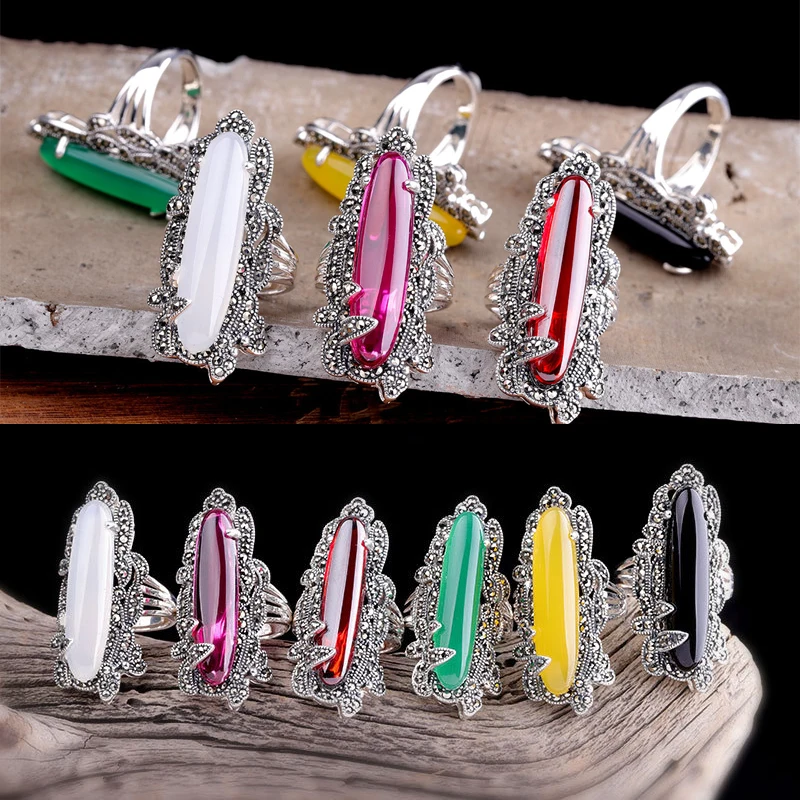 Кольцо из настоящего серебра 925 пробы с большим камнем, регулируемое кольцо из стерлингового серебра, драгоценный камень, агата, ювелирные украшения, женский подарок на свадьбу, помолвку Основной драгоценный камень: созданный драгоценный камень Corundun/агат Размер камня: Oval8 * 20 мм Вес: 10,8 г
