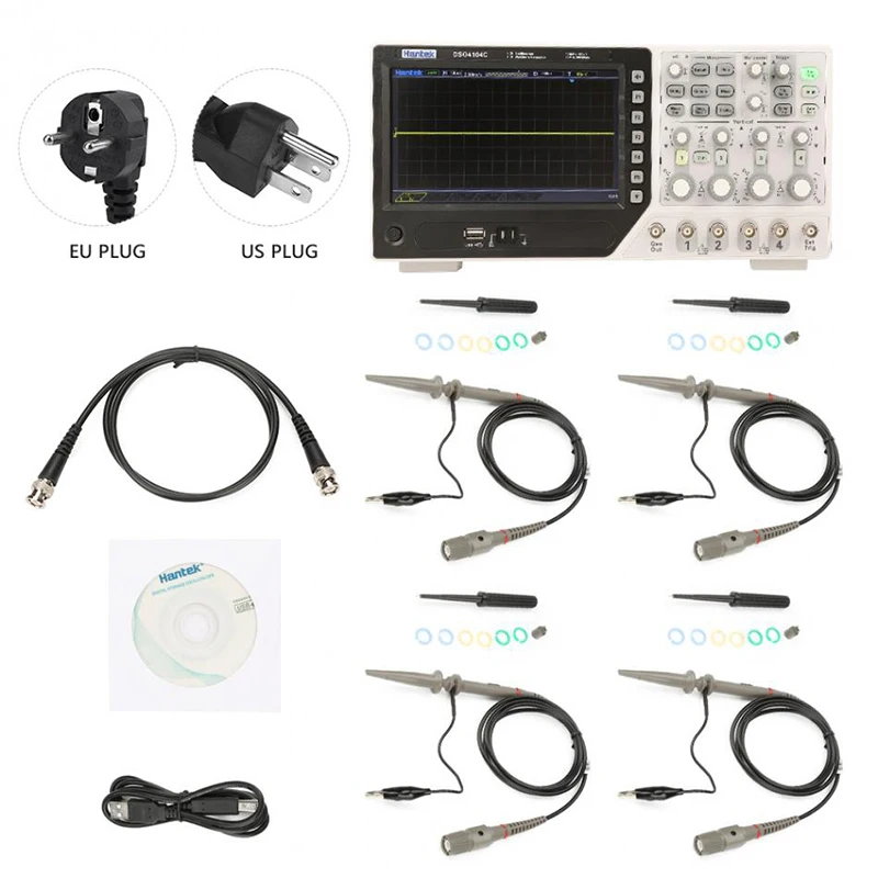 Hantek DSO4104C осциллограф цифровой осциллограф Ac100-240v 64K 4CH 100 МГц источник сигнала 1GSs Высокое качество Бесплатная доставка