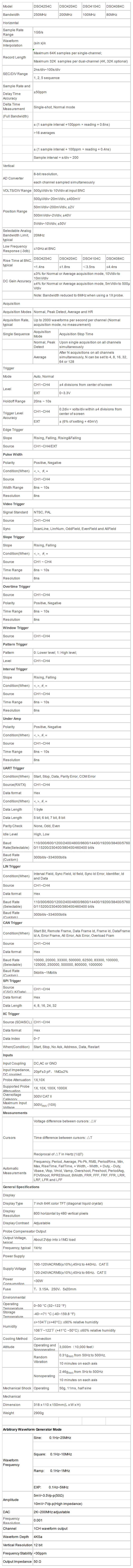 Показать Технические характеристики DSO4104C