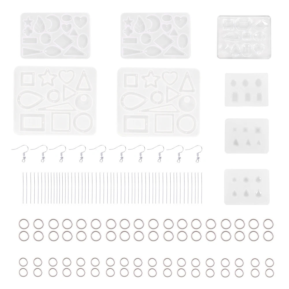 Особенности: 100% абсолютно новый и высокого качества. Многоразовые, прочные, легко выцветают, легко моются. Широкое применение-может применяться для ручных работ и ювелирных изделий, таких как цепочка для ключей, серьги, ожерелья, подвески, браслеты и т. Д., с большим количеством инструментов для работы, которые помогают Вам сделать их более легкими. Параметры: Размер: как показано на фотографиях Высококачественные ювелирные изделия из силикона, который является гибким и гладким. Упаковка включает в себя: 8 x силиконовые полимерные формы, 40 крючков для сережек, 50x4 мм кольца для прыжков, 50x7 мм кольца для прыжков, 100 x штифтов для головы/глаз.