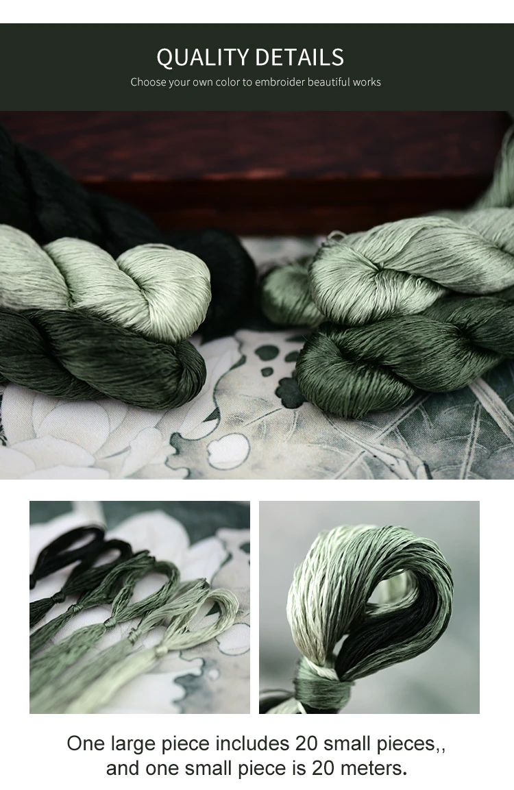 400 м чистый цвет вышивки нитки/поделки, ручная вышивка/аксессуары ручной работы/цвет зеленого Моха Особенности: 1.100% шелк и высокое качество, подходит для Сучжоу ручной вышивки. 2. Длина: 400 метров (20 метров/маленький кусок) 3. У вас есть шесть цветов на выбор 4. Пожалуйста, обратите внимание, что в зависимости от дисплея, продукт может производить некоторые различия в цвете, пожалуйста, знать и понять эту ситуацию. В комплект входит: 1 шт. (включая 20 маленьких штук)