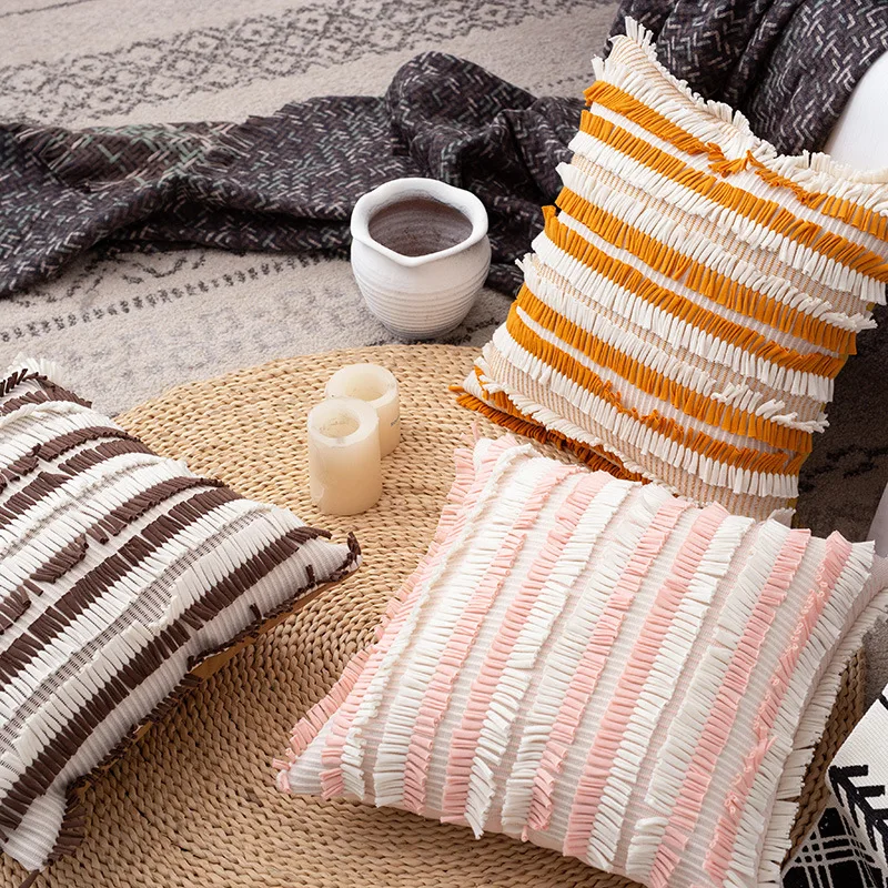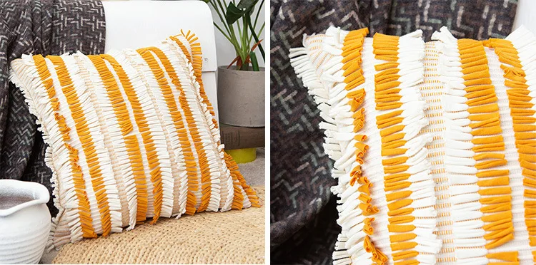 Белый чехол для подушки в цветочек с кисточками квадратный чехол для подушки Желтый цвет слоновой кости черный хлопок наволочка 45x45 см украшение дома диван 18"
