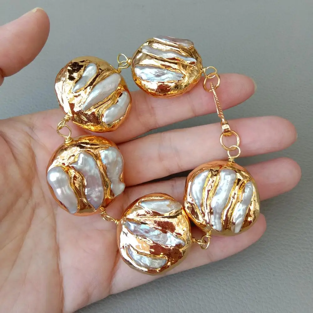Gems Info: Fresh water cultured pearl, 24 K Yellow Gold Plated white keshi pearl, good quality, high luster!