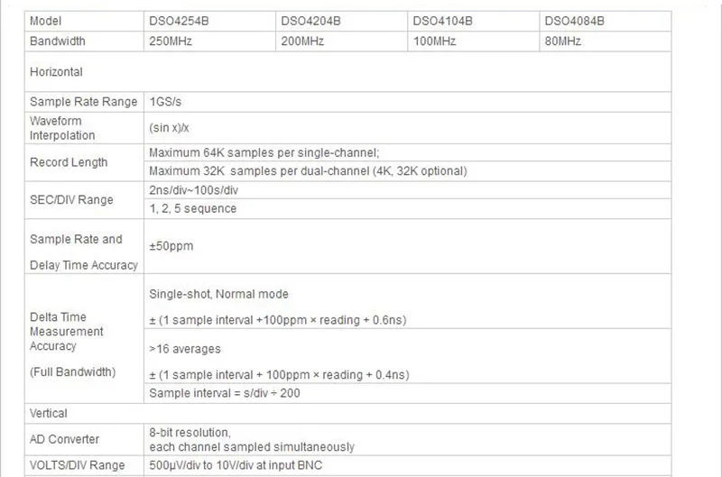 Серия DSO4004B 4CH осциллограф, полоса пропускания 80-250 МГц, минимальный диапазон измерения 500μV /div, частота образцов 1GS/s, усовершенствованная цифровая ТРИГГЕРНАЯ система, высокая чувствительность триггера, низкий триггер дрожания, высокое разрешение 7 дюймов 64K цветной TFT (800*480)
