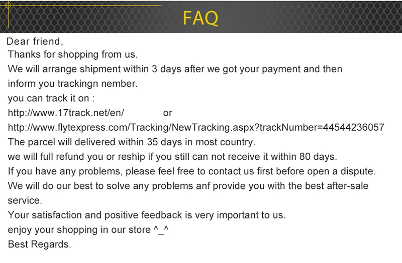 Примечание: наш персонал склада проверит товар перед отправкой Nota 2: para os paises que carregam algum frete, porque não HA nenhum vóo de ems para o seu pais, precisamos enviar-lhe logistica expressa, com um limite de tempo de cerca de uma semana. Por favor entenda