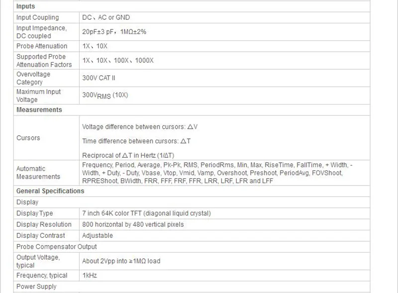 4CH осциллограф + EXT + DVM + Функция автоматического диапазона 80-250 МГц полоса пропускания, минимальный диапазон 500μV /div,1GS/s частота образца. Более 32 типов функции автоматического измерения Усовершенствованная цифровая система триггера, высокая чувствительность триггера. Более 14 типов функций триггера: edge, overtime, pulse, pattern, interval и т. д. Встроенный usb-хост/устройство, удобно общаться с ПК. Поддержка U-stick storage/systerm update. Поддержка различных SCPI дистанционного управления Поддержка дополнительного порта RS232, порта LAN, порта HDMI, сенсорного экрана, Wi-Fi связи, хранения sd-карт Стабильное и надежное качество, прочный и прочный.