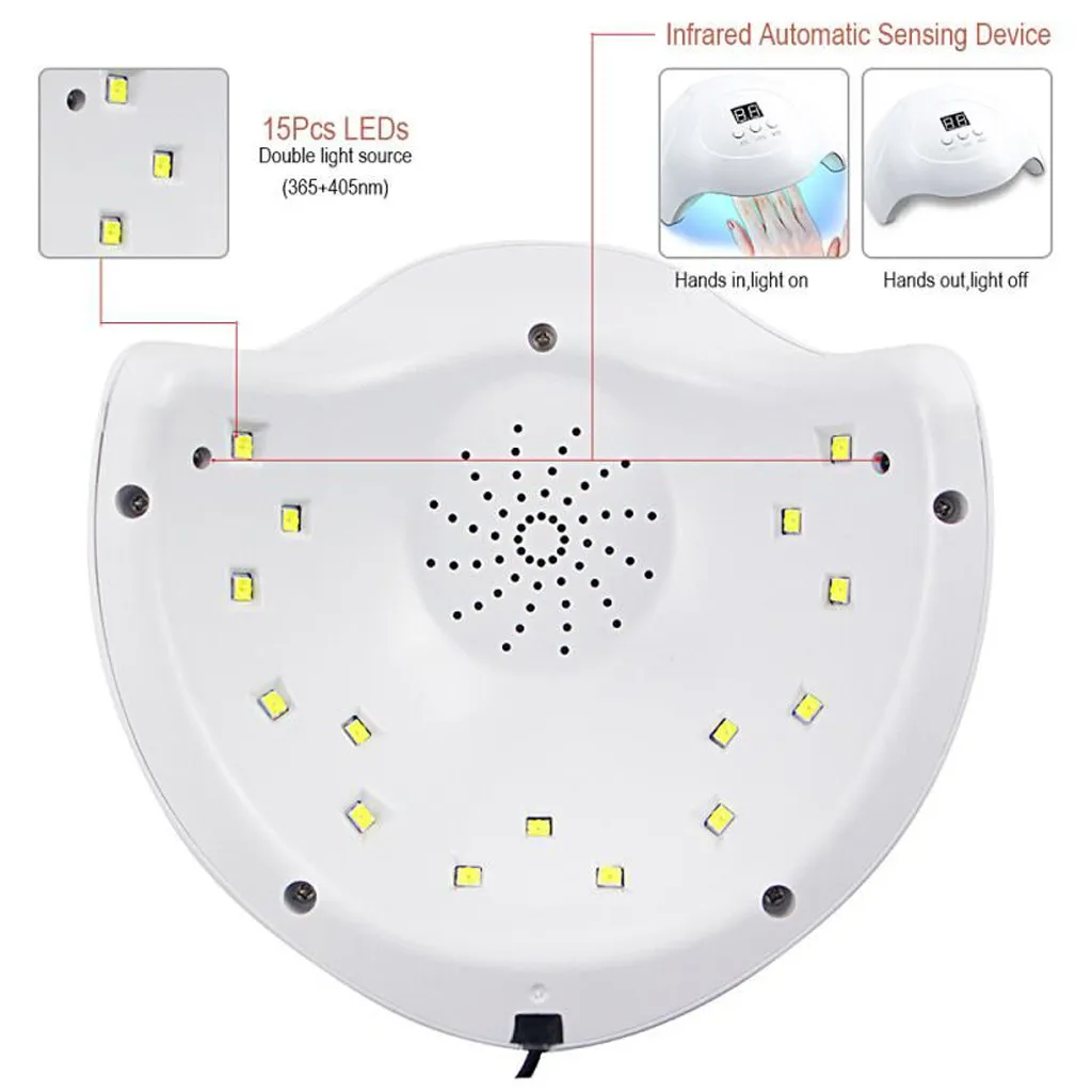 Он идет в комплекте с 15 шт. прочный 100000hrs пожизненная светодиодный бусины. Модный дизайн и достаточно большая комната, чтобы облегчить Лечение 5 ногтей.