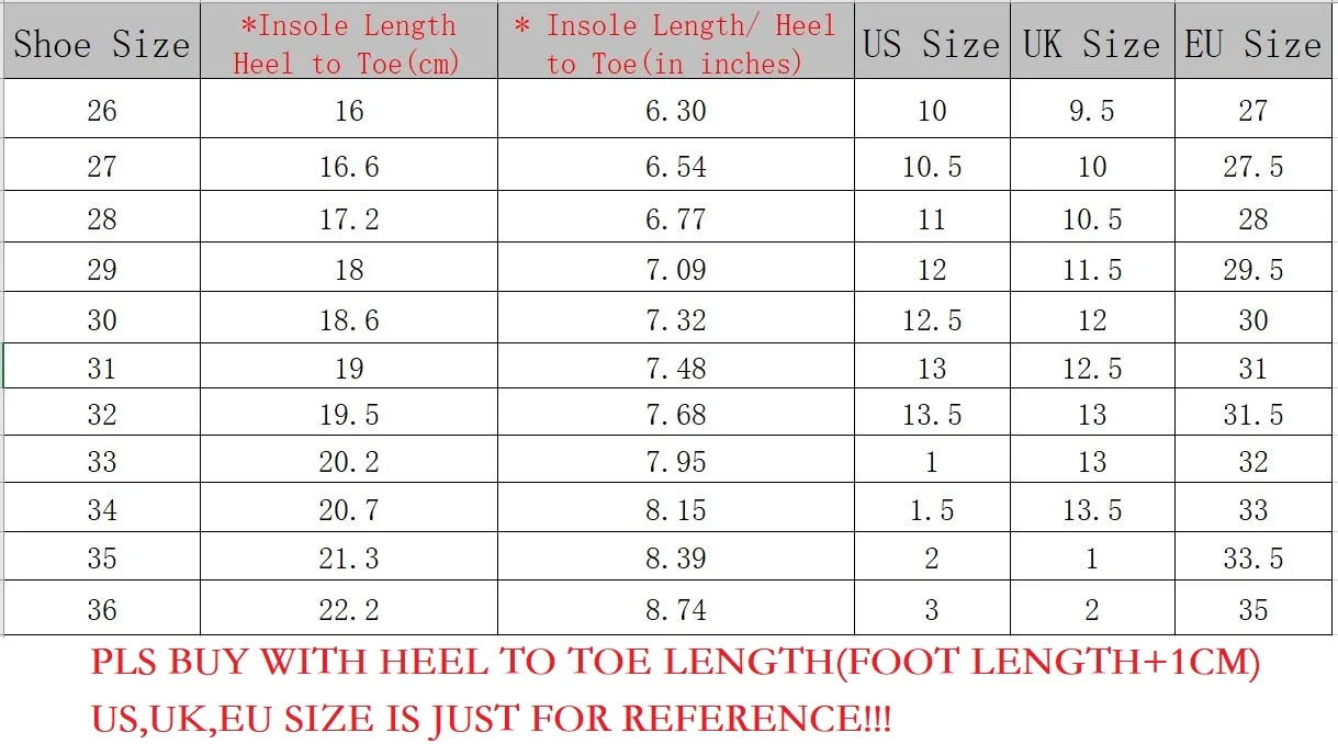 Пожалуйста, выберите размер в зависимости отДлина стельки. ИОбувь, которую мы отправляем,Размер CN, который мы не можем видеть в нашей информации о размерах.Поэтому, пожалуйста, поймите, почему вы не можете видеть размер, который вы выбираете! Если вы не знаете, как выбрать размер, свяжитесь с нами!