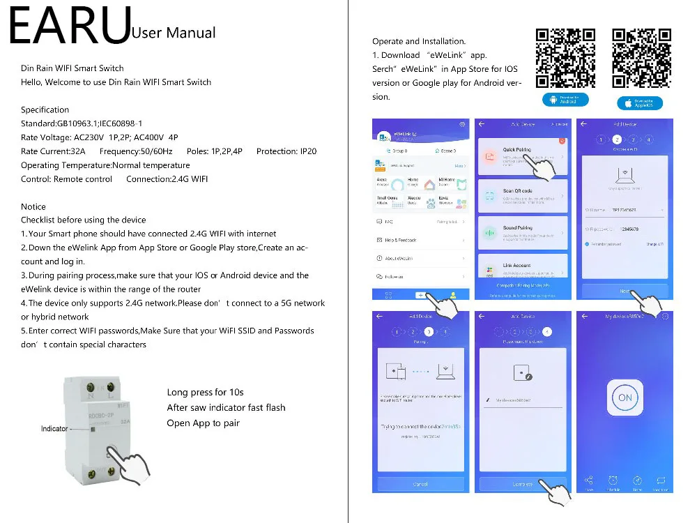 Примечание: Это тип реле, не имеет короткого замыкания, защита от перегрузки 18 мм din-рейка WIFI Smart Switch дистанционное управление с помощью приложения eWeLink для умного дома Характеристика1. Дистанционное управление в любое время из любого места