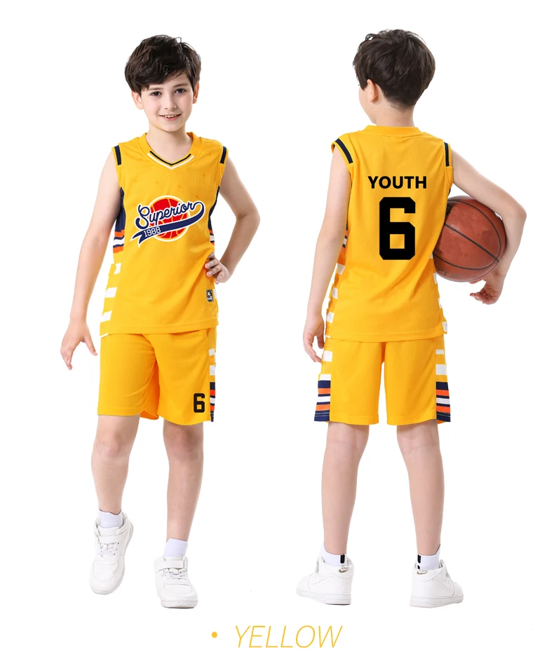 Комплект из дышащего и быстросохнущего баскетбольного Джерси с короткими рукавами Подходит для детей летом