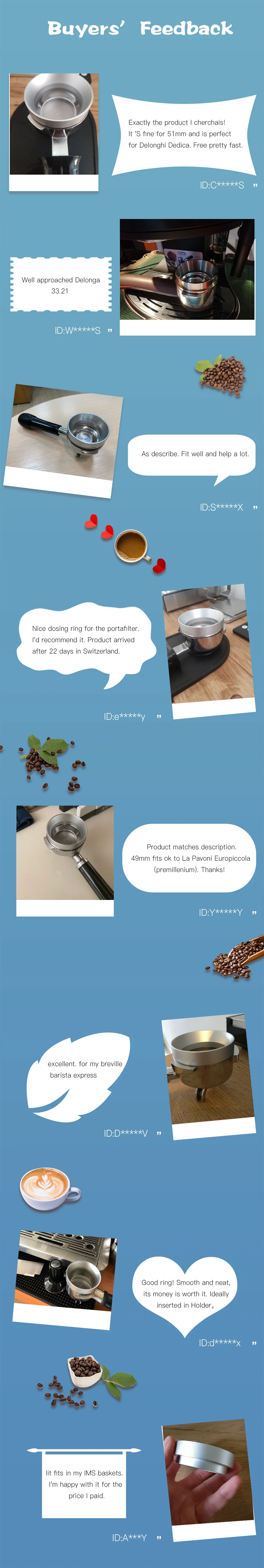 Бездонный портафильтр и корзина фильтра изготовлены из высококачественной нержавеющей стали, Дозирующее Кольцо изготовлено из алюминия, прочное и практичное.