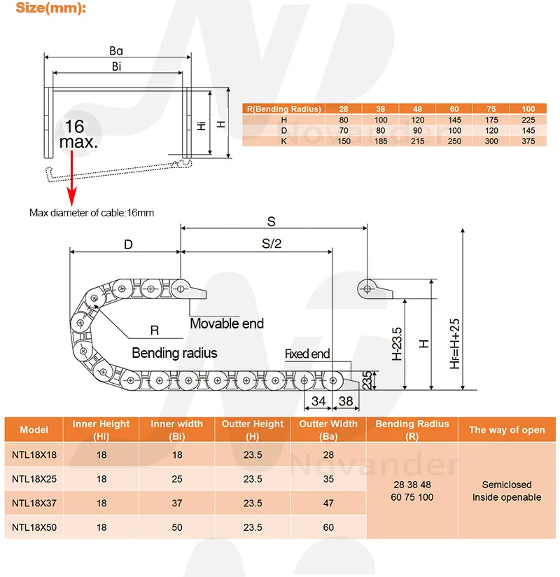 18x18 18x25 18x37 18x50 пластиковая цепная Тяговая кабельная цепь L 1 м 18*18 18*25 18*37 18*50