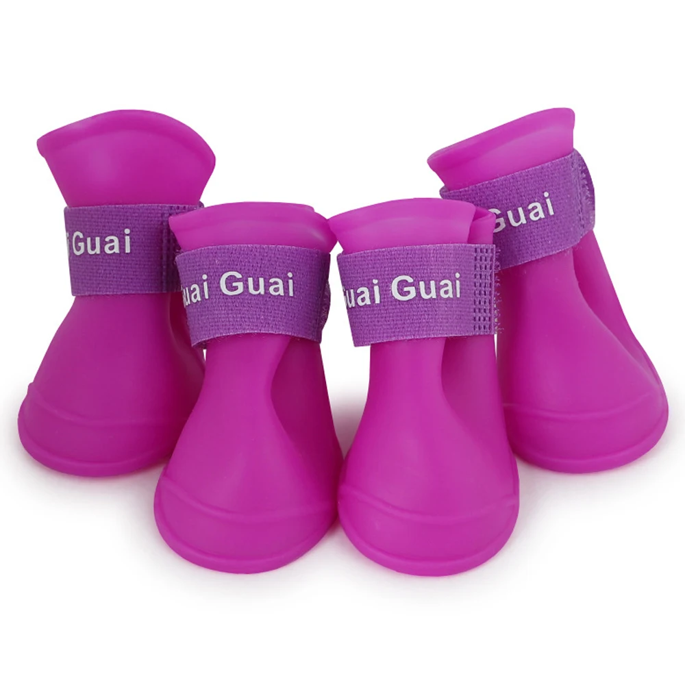 Цветные резиновые сапоги для домашних животных, непромокаемые сапоги для собак и кошек, противоскользящие водонепроницаемые, 4 шт./компл., Обувь для собак, товары для домашних животных