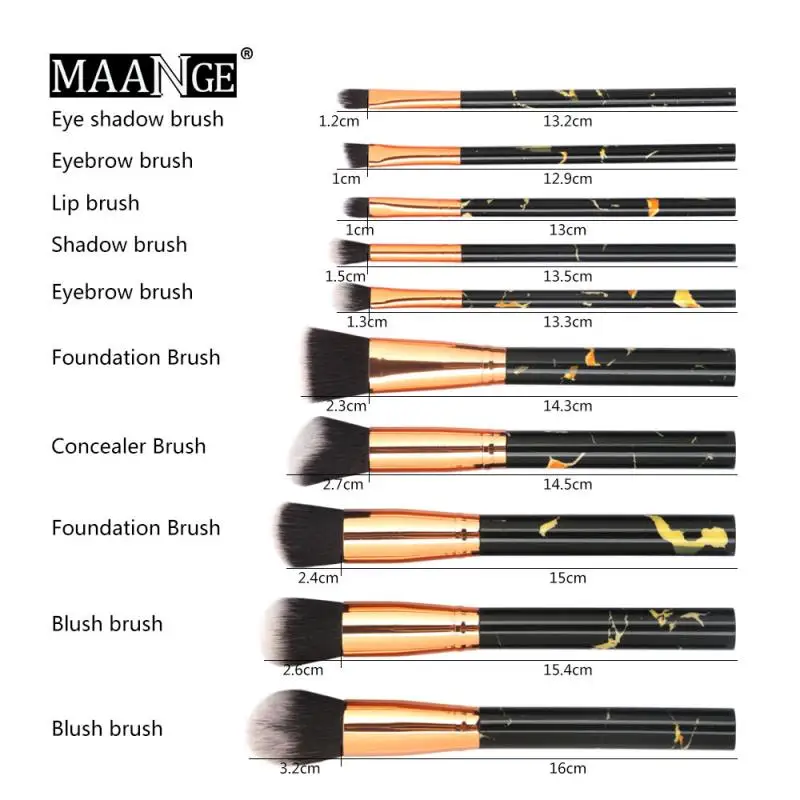 MAANGE Pro 10 шт. набор кисточек для макияжа, профессиональный тональный порошок, румяна, тени для век, консилер, Кисть для макияжа губ, инструменты