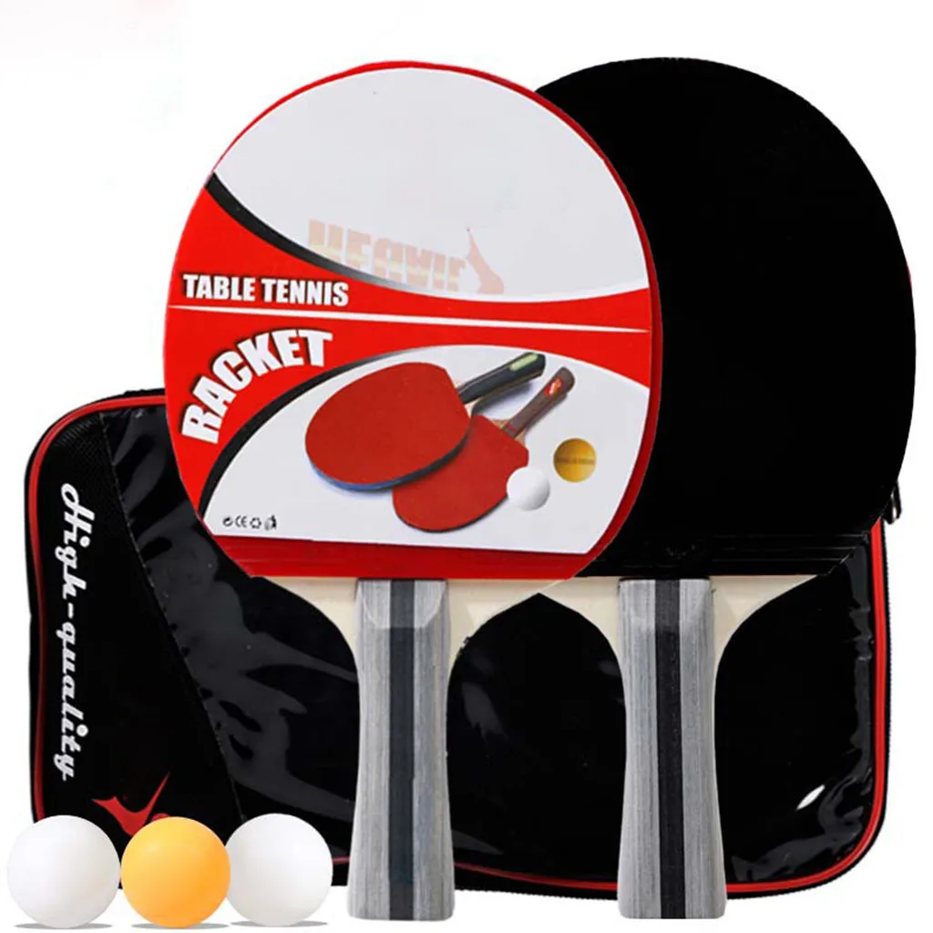 Indoor 2 Player Professional Table Tennis Racket 2PCS Paddle Bat 3Balls Set