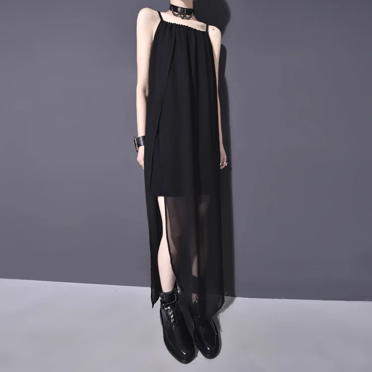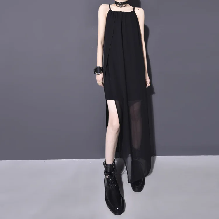 Асимметричное Платье с лямкой на шее, черное шифоновое длинное платье на бретелях с круглым вырезом, vestidos de festa
