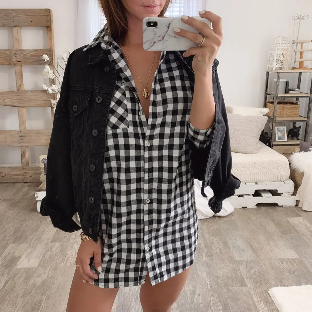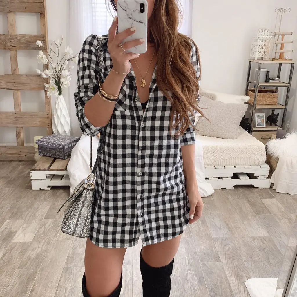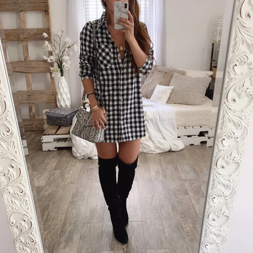 Новое Европейское и американское Новое клетчатое мини-платье с v-образным вырезом и длинными рукавами женская одежда Повседневное платье vestidos mujer