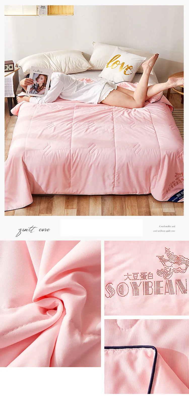 Параметры Материал: бобовое волокно, хлопок, полиэстер Size150x200cm,180x220 см, 200x230cm Цвет: как на изображении Примечание: возможны отклонения в 1-3 см, а в интернет-магазине возможны незначительные расхождения в цвете Особенности 1. Не выцветает, мягкий, прочный, Воздухопроницаемый 2. Превосходное стеганое мастерство