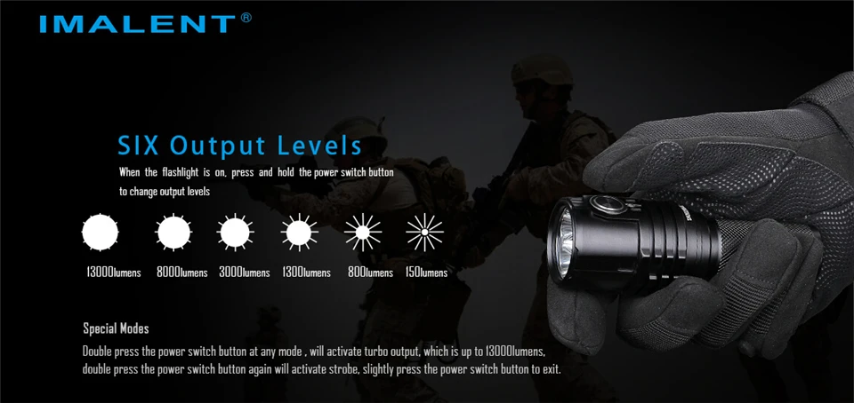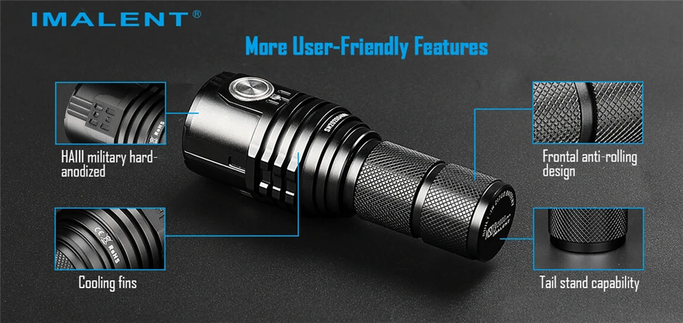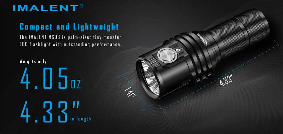 IMALENT MS03-это маленький фонарик с изображением монстра, размером с ладонь, с отличной производительностью. Питание от одного литий-ионного аккумулятора с высокой разрядкой 21700 со встроенной usb-зарядкой type-C, он испускает максимум 13000 люменов и расстояние луча 324 метра. Этот изысканный фонарик изготовлен из прочного высокопрочного и стойкого к окислению алюминия. С шестью выходными уровнями плюс стробоскоп и индикация уровня заряда батареи плюс Быстрая зарядка типа C, этот свет длиной 11 см должен иметь Для повседневной жизни, активного отдыха и ремонтных работ. Особенности продукта · Использует 3 шт. американских CREE XHP70 2nd светодиодов. Срок службы до 50000 часов с максимальной мощностью 13000 люменов. · Питание от USB Type-C перезаряжаемого литий-ионного аккумулятора 4000 мАч 21700.
