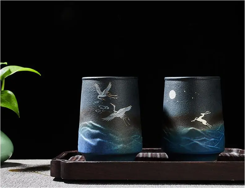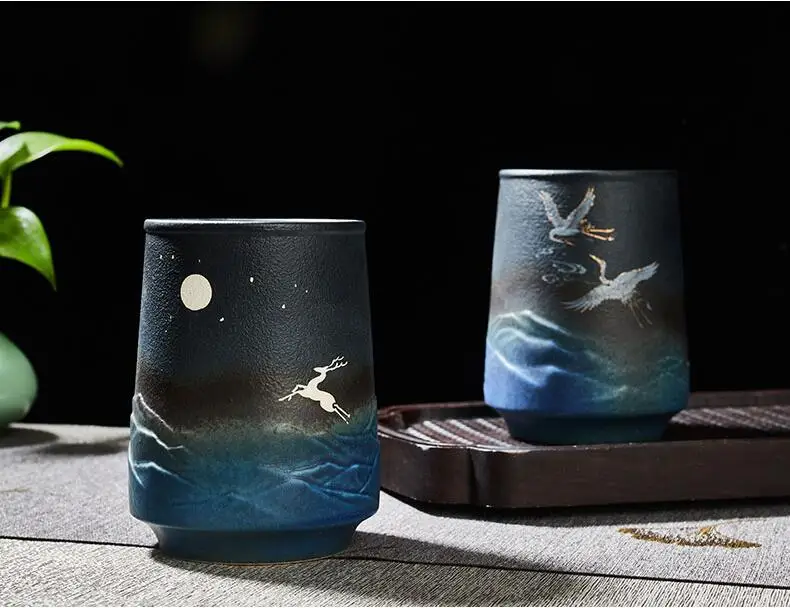 TECHOME классическая керамическая чашка для дома и офиса чашка для воды Черно-синяя Художественная печать чашка круглая чашка специальная подарочная чашка