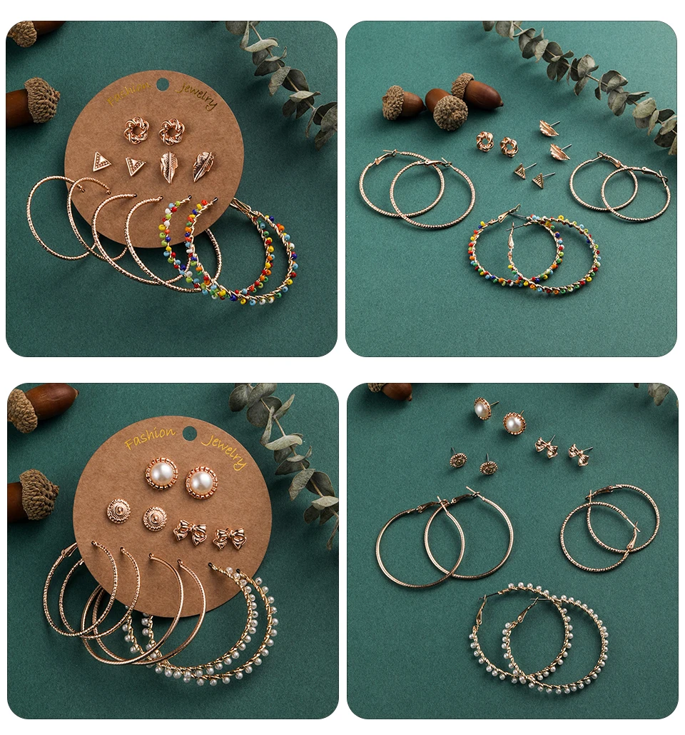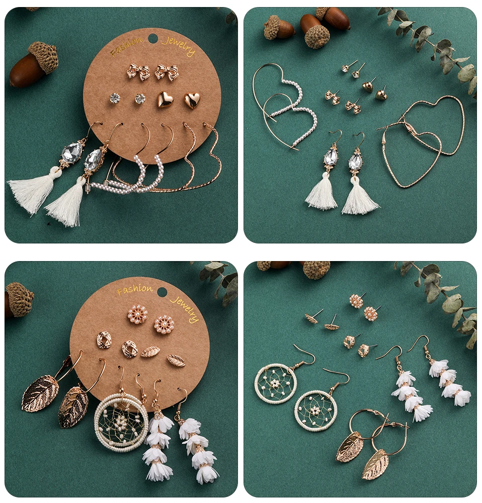 Винтажные серьги-гвоздики в стиле бохо, смешанные для женщин и девушек, золотые листья, ткань, цветок, кисточка, висячие серьги, 6 пар/уп., 2020, очаровательные ювелирные изделия
