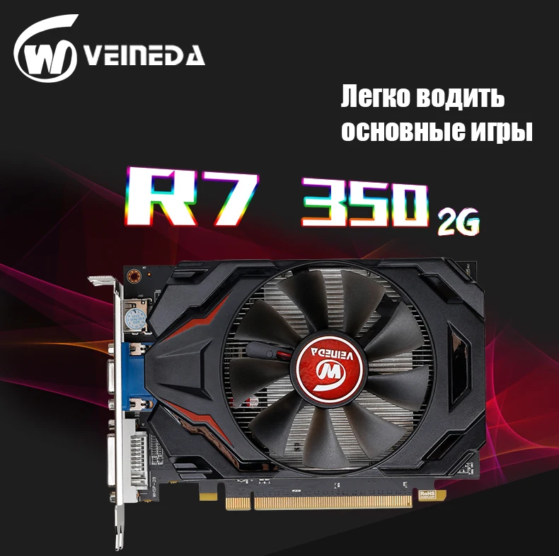 Оригинальный рабочего GPU Графика карты Veineda R7 350 2 Гб GDDR5 128Bit независимой игры видеокарта R7-350 для ATI Radeon игр