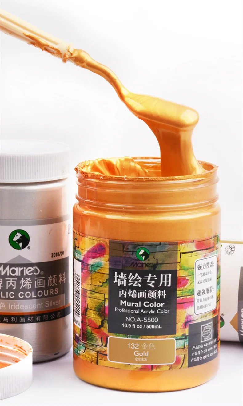 Спецификация: 500 мл Цвет: Золотой/Серебряный Применение: шелковая трафаретная печать, ручная роспись, граффити, настенная живопись, сделай сам и т. д.