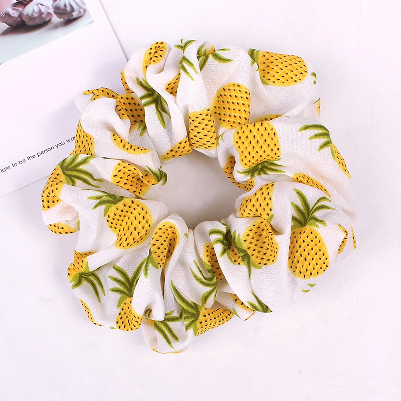 Strawberry Pineapple Printed Scrunchie Hair Ties Elastic Girls Ponytail Holder