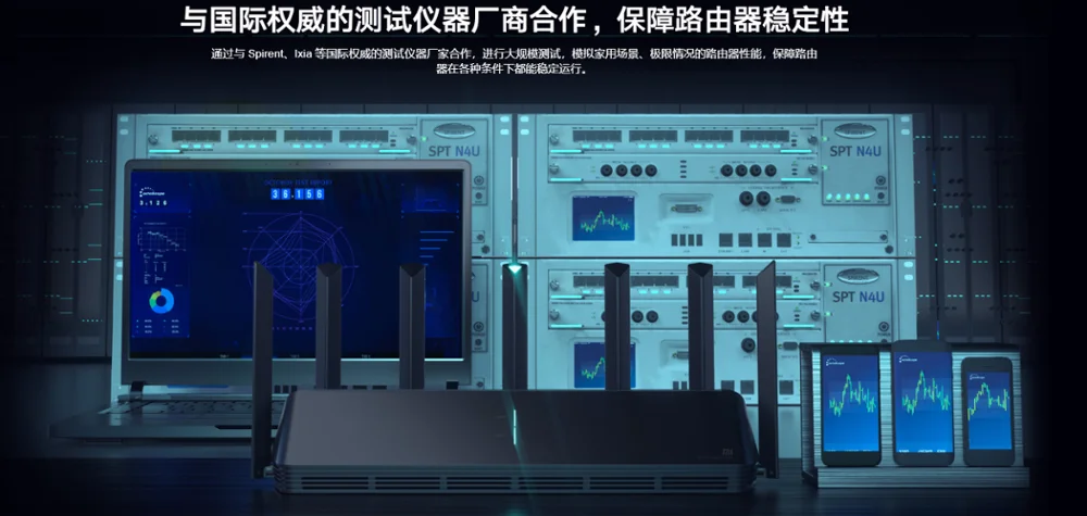 В сотрудничестве с авторитетными международными производителями тестовых приборов, такими как Spirent и lxia, мы проводим крупномасштабные тесты, имитирующие сценария в домашних условиях и производительности маршрутизатора в экстремальных условиях, чтобы гарантировать, что маршрутизатор способен стабильно работать в различных условиях.