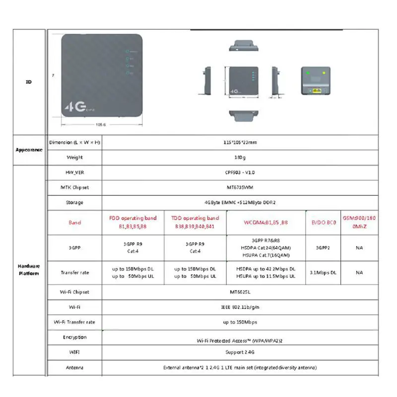 1x4G LTE CPE,