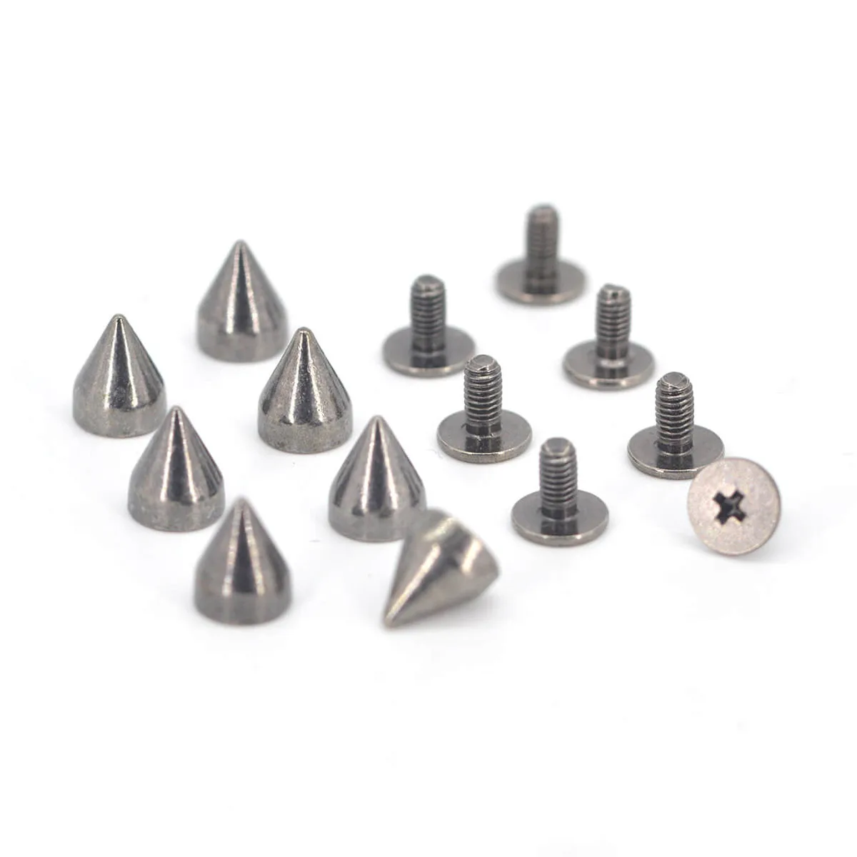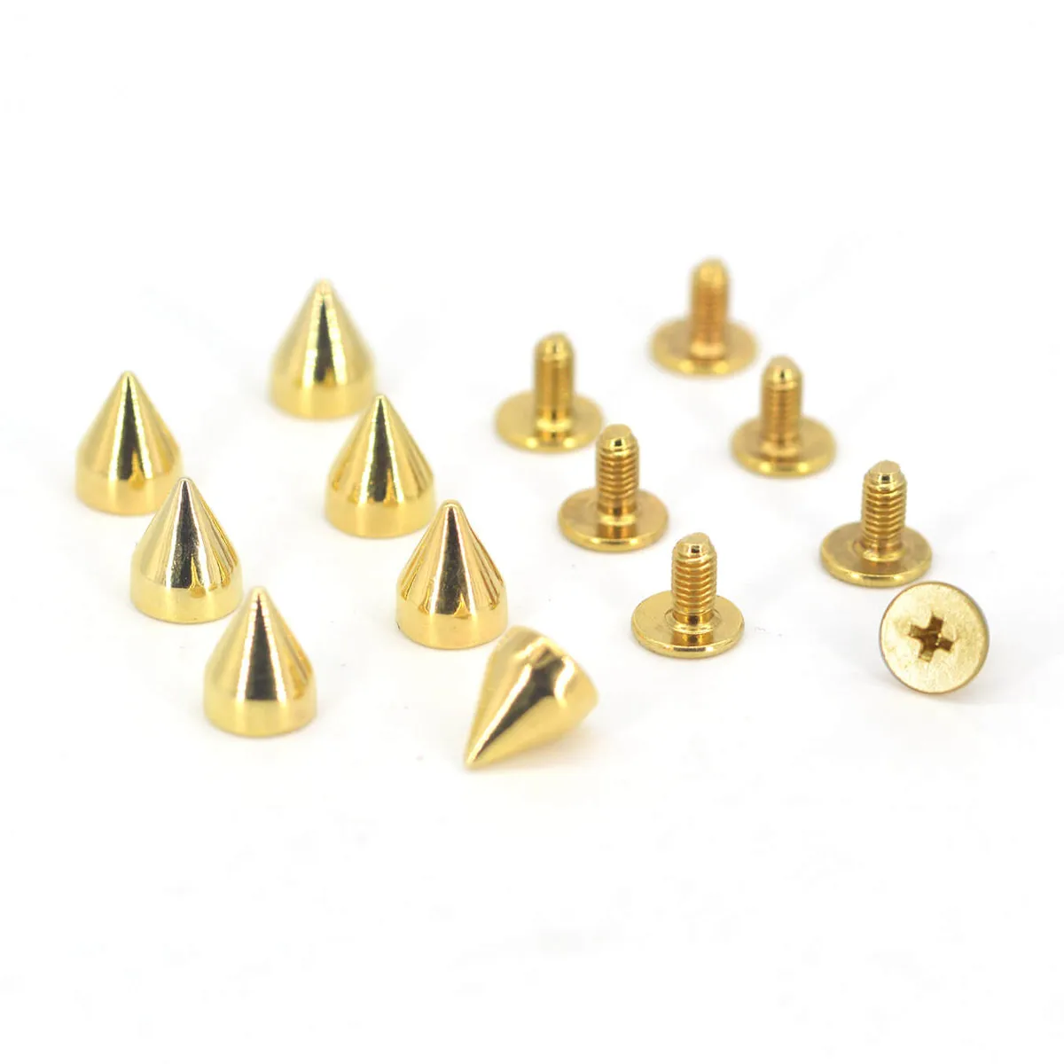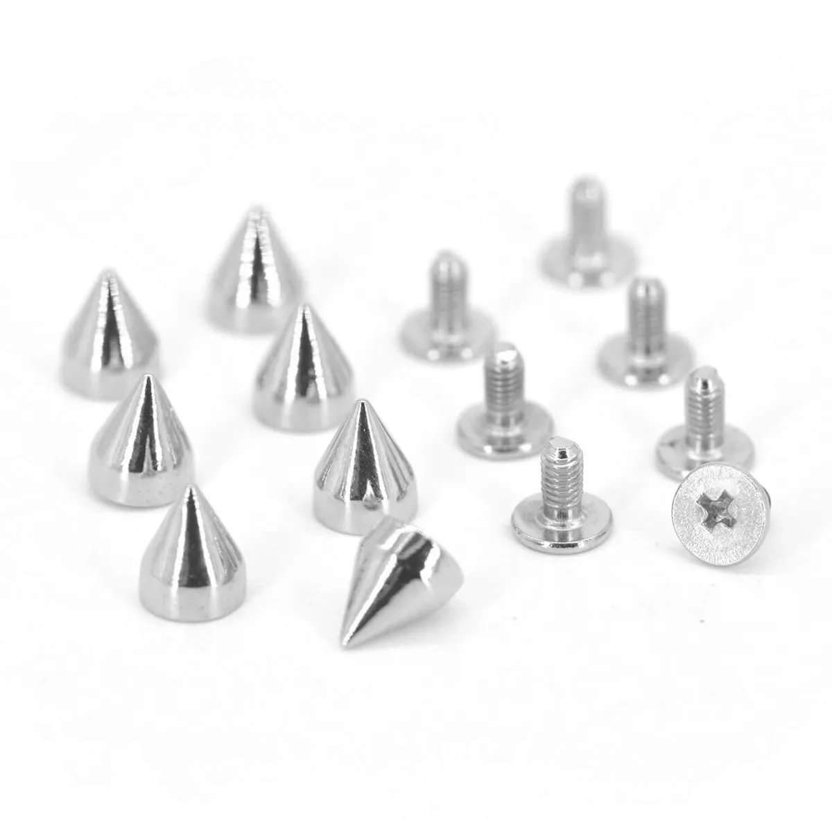 100% новый бренд. Высота: 9 мм Основание: 7 мм Цвет: черный, золотой, серебряный, медный Материал: сплав. Форма: Круглый конусный шип. Посылка включает в себя: 100 шипы, конусные шпильки с заклепками 7*9 мм конусные шипы с круглым основанием Эта шпилька в форме конуса, Поставляется с винтом для нанесения. Тип винта: щелевые/Phillips (зависит от наличия на складе). Шипы отлично подходят для различных проектов: панк-одежда, украшение мотором, одежда от кутюр, модная одежда и другие проекты DIY. Подходит для: кожаных браслетов, ошейников для собак, сумок, одежды, обуви, ремней, шляп и т. д. Эти шипы могут быть применены к большинству материалов, таких как кожа и деним, путем крепления шипа к винту.