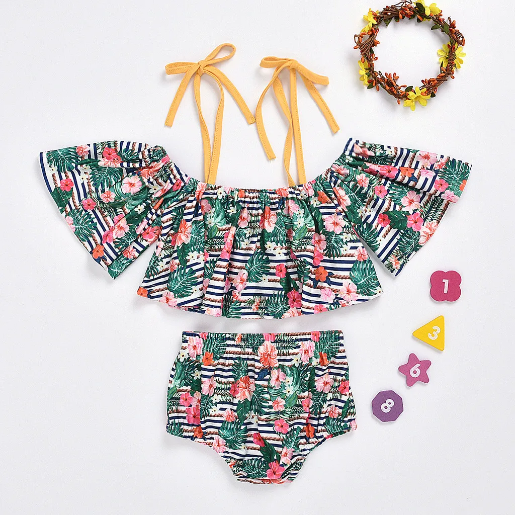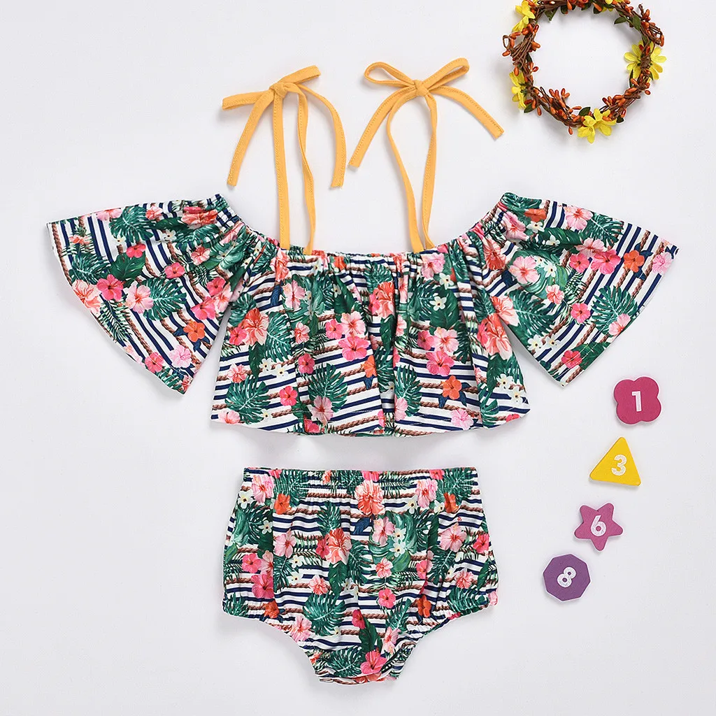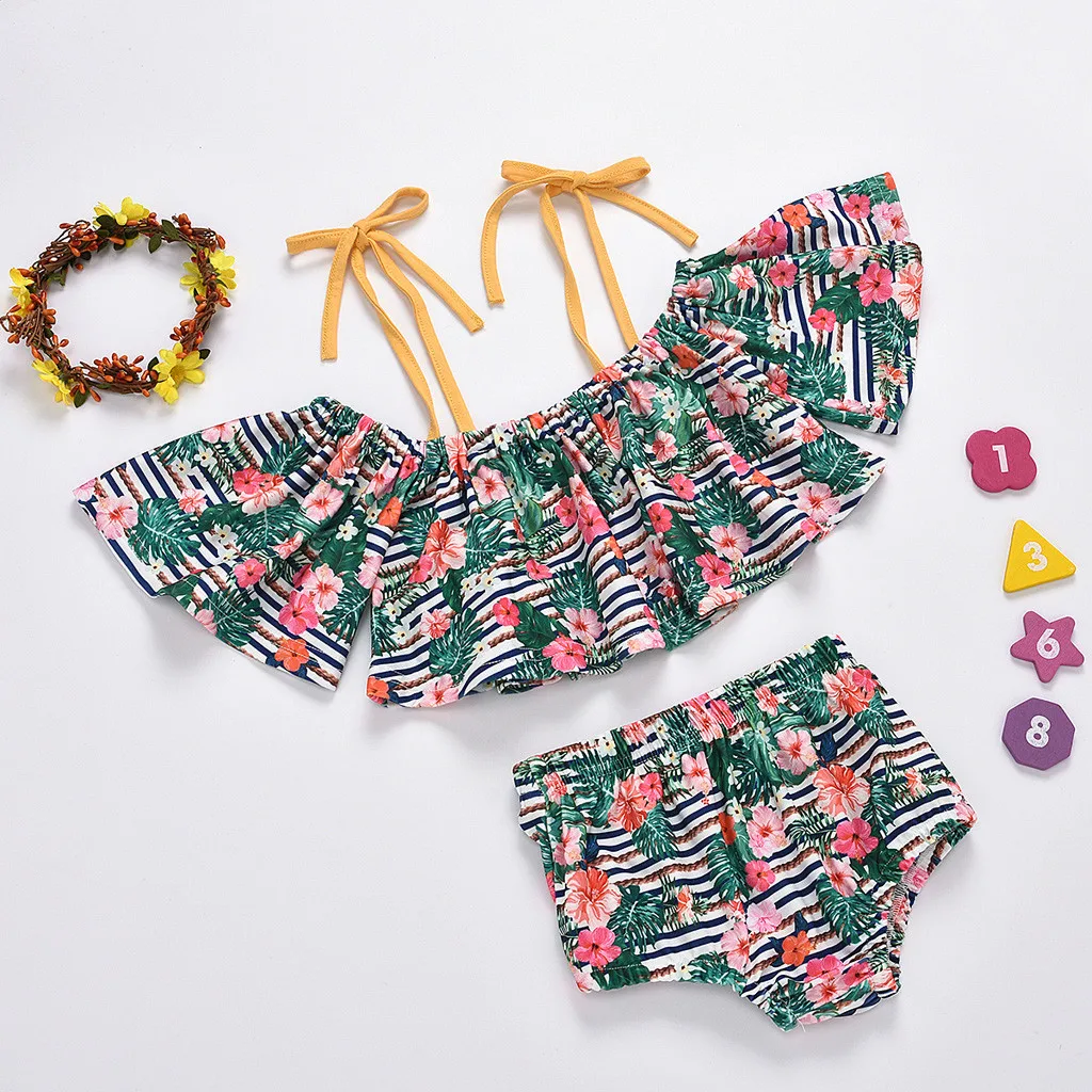 Купальник-бикини с цветочным рисунком для маленьких девочек, топы + короткие пляжные купальные костюмы