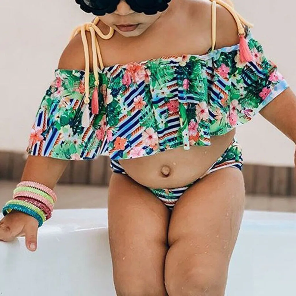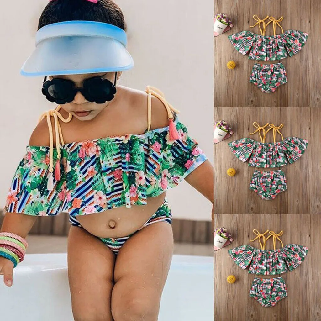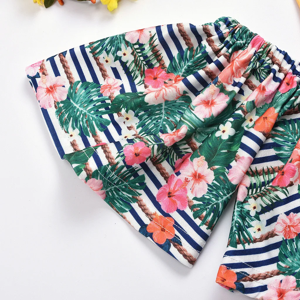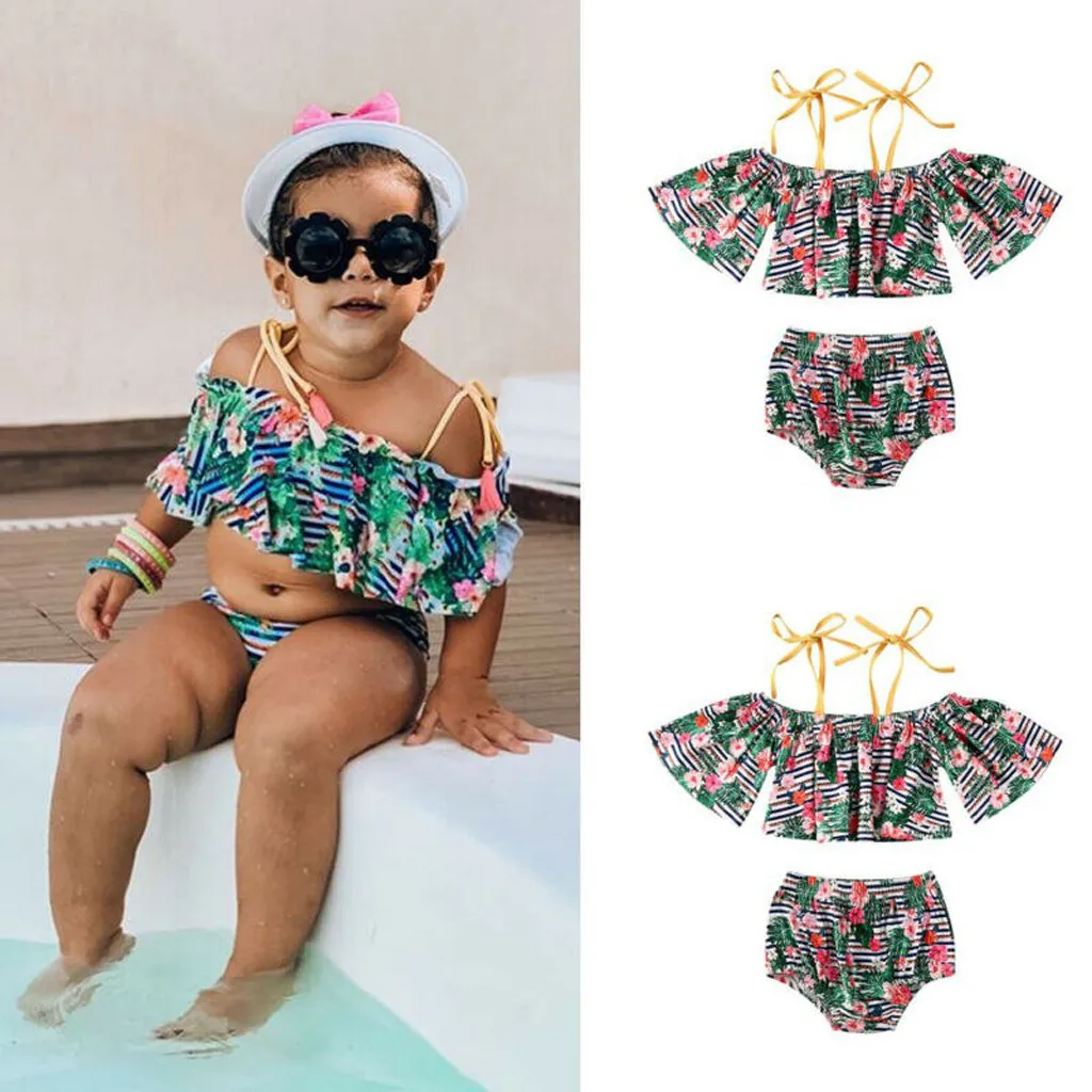 Купальник-бикини с цветочным рисунком для маленьких девочек, топы + короткие пляжные купальные костюмы