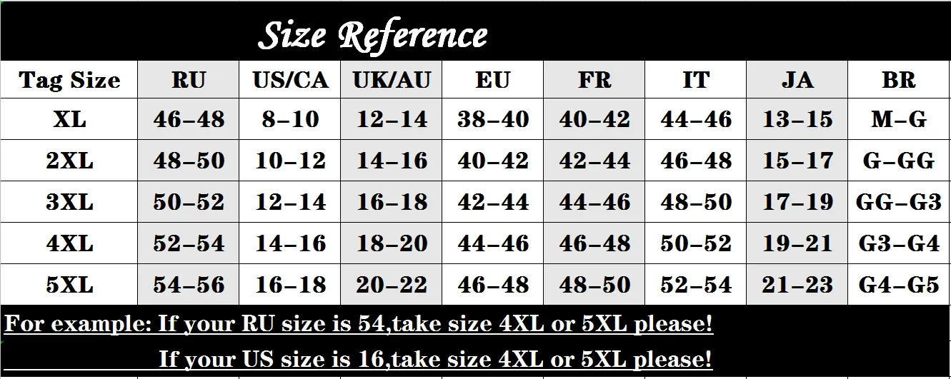 size Chest Length Sleeve XL 94-110cm 61cm 50cm 2XL 97-120cm 62cm 51cm 3XL 100-130cm 63cm 52cm 4XL 104-140cm 64cm 53cm 5XL 108-150cm 65cm 55cm