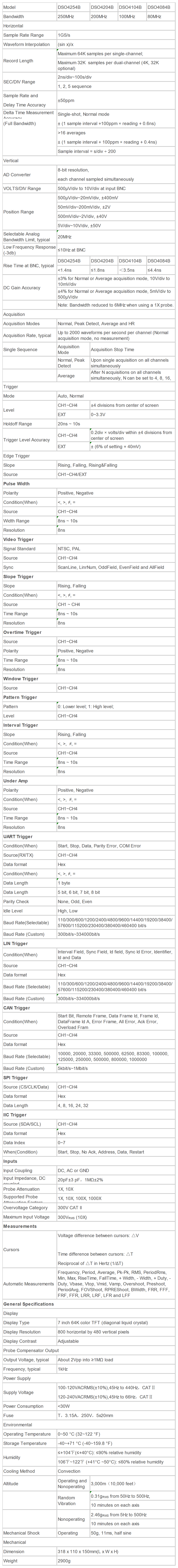 Показать Технические характеристики DSO4204B